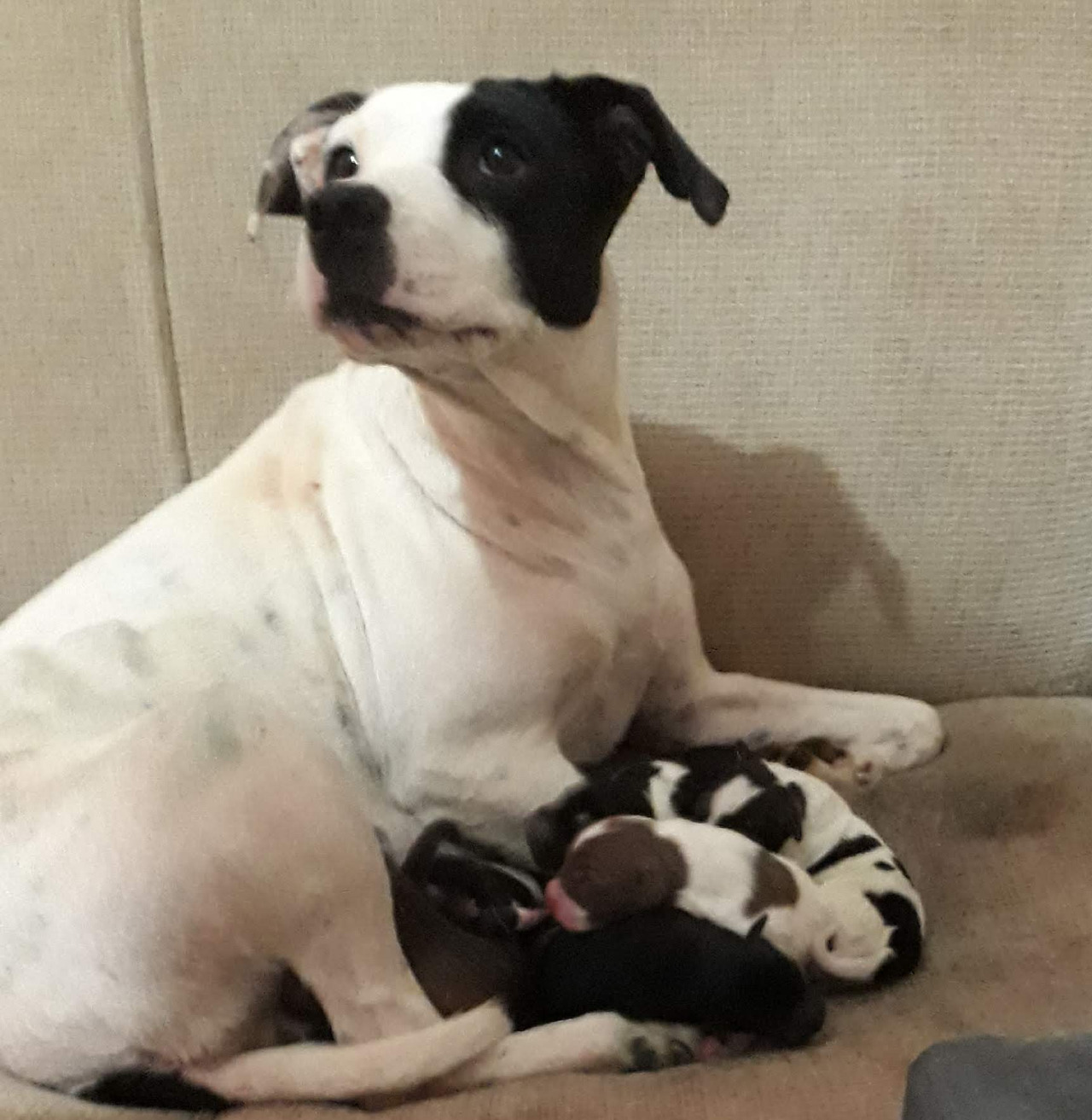 Ela era vira-lata, mas tinha traços clássico de pitbull. E nós tínhamos 2 cães.